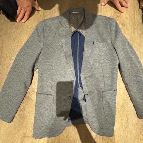 Flot blazer til den høje mand. med brystlomme og 2 lommer som ikke er sprættet op, så de sidder flot. 3 indvendige lommer i den ene side og 1 indvendig lomme i den anden side. Ydre ærmemål fra skulder: 67 cm. Jakkens længde 85 cm. 3 knapper ved hvert ærme. Den svarer ca. til L/XL. Absolut i god fin og intakt stand. Fra ikke ryger hjem.