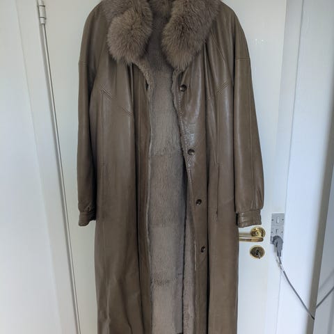 Der er ingen synlige mærker indeni, hvilket tyder på, at frakken er lavet af en pelsskrædder. Håndværket er tydeligt: pasform, syninger og finish er udført i meget høj kvalitet.