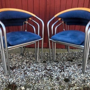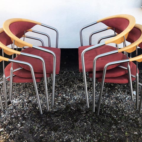 Stabelbare armstole med stel af kraftigt, forkromet stål.