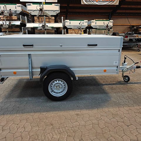 Cargotrailer KT PB AL 4018/27 MF – robust boxtrailer i aluminiumKT PB AL 4018/27 MF er en professionel cargotrailer i absolut topklasse, hvor høj funktionalitet møder elegant design. Denne lukkede aluminiumstrailer er skabt til krævende transportopgaver og egner sig perfekt til alt fra erhvervskørsel til transport af motorcykler, e-bikes og værdifuldt gods.Med helsvejset aluminiumsopbygning, lav læssehøjde og et gennemtænkt interiør får du en boxtrailer, der er både slidstærk, brugervenlig og visuelt flot.Robust konstruktion i aluminium – bygget til daglig brugTraileren er opbygget i dobbeltsidede, eloxerede aluminiumsprofiler, som sikrer maksimal stabilitet, lang levetid og minimal vedligeholdelse. Det galvaniserede stål-bagportal giver ekstra styrke ved rampen og bagenden – ideelt ved hyppig læsning.Sidevægge i 18 mm aluminiumsprofilerGalvaniseret og ekstra stabilt bagportalEffektiv tætning mod fugt i hele opbygningenLav læssehøjde og flad rampe – nem ind- og aflæsningDenne cargotrailer fra Böckmann er udstyret med sænket chassis, som giver en meget lav læssehøjde på kun ca. 47–49 cm. Den flade rampe uden kanter eller mellemrum gør det let at køre fx motorcykler og e-bikes ind og ud.Lav læssehøjde for komfortabel håndteringRampe uden spring og kanterSilikonebelagt rampe for bedre grebFleksibel lastsikring med CFlexLock-systemDet integrerede CFlexLock-system giver maksimal fleksibilitet ved fastgørelse af lasten. Surringsøjerne kan flyttes frit langs siderne og er DIN 12640 TÜV-godkendt med 600 daN trækkraft pr. fastgørelsespunkt – uanset surringsretning.Frit justerbare surringspunkter6 surringsringe monteret med glideblokkeFri gulvflade uden forhindringer langs sidevæggenePraktiske detaljer, der gør en forskelDenne cargotrailer er spækket med smarte løsninger, der gør hverdagen nemmere:Kombination af 1-fløjet dør og rampeKraftig 180° vinkel-/grebslås – nem og sikker betjeningAutomatisk låsesystem – døren låser selv ved lukningIndvendig LED-belysning med separat kontaktEkstra opbevaringsrum forrest – perfekt til surringsgrejIndfræsede manøvrehåndtag (2 stk.) for let håndteringEffektiv vandafledning og tætningslister mod fugtMål og kapacitet – masser af plads og høj nyttelastTotalvægt: 2.700 kgAksler: 2 stk.Nyttelast: 1712 kgIndvendige målLængde: 424 cmBredde: 187 cmHøjde: 209 cmPassagemålPassagebredde: 180 cmPassagehøjde: ca. 175 cmUdvendige målTotal længde: 559 cmTotal bredde: 240 cmTotal højde: 257 cmStandardudstyr Polyester tag og front i anthracite-metallicSkridsikkert, vandfast filmbelagt gulvIndvendig belysningSideplaceret belysningNæsehjulpåløbsbremse14” hjul med robuste dækKort sagt – derfor skal du vælge cargotrailer fra Böckmann✔ Ekstremt robust aluminiumstrailer✔ Lav læssehøjde og brugervenlig rampe✔ Fleksibel lastsikring med CFlexLock✔ Perfekt til motorcykler, e-bikes og erhverv✔ Elegant design og høj gensalgsværdi