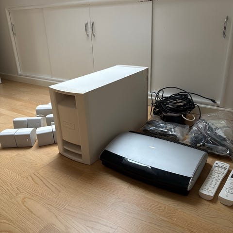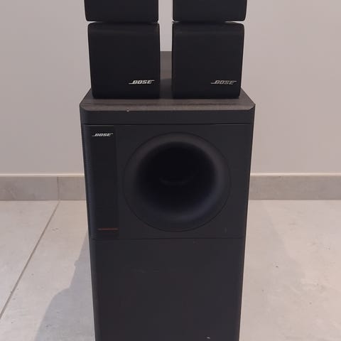 Produkten er et lydsystem med en sort subwoofer og to grå satellit-højttalere.,Afhentes i:,Røde Kors Kolding (621),Bemærk at mail, chat og beskeder ikke besvares, og varen skal købes på knappen "Gå til varen"