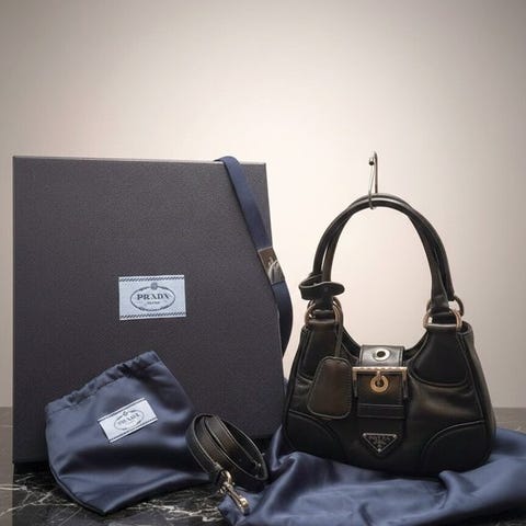 Titel: PRADA Symbol Lille Tote Skuldertaske i canvas og læder, brun og hvid, 1BA354 90306019