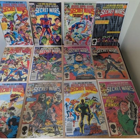 Marvel Super Heroes Secret Wars nr. 11, første udgave, CGC 9.8 Mint, hæftebundet, udgivet af Marvel Comics på engelsk i 1985, med Mike Zeck, John Beatty, Art Adams og Jim Shooter. Klik på den blå "gå til varen" knap, for at købe eller byde på denne vare. Den samlede pris vil blive vist inden du afgiver dit bud.