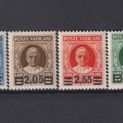 1929/2023 komplet samling af Vatikanets frimærker med originale og intakte gummer, til almindelig brevpost, luftpost, ekspres, segnatasse, pakkepost, småark, hæfter og minifolier, der også omfatter den PROVISORISKE serie fra 1934 i brug, certificeret af frimærkeeksperten "RAYBAUDI". Nogle serier fra den første periode er brugte, andre har let tegn på hæftemærke; alle de øvrige frimærker i samlingen har komplette gummer og er fotograferet i perfekt stand af høj kvalitet. Kollektionens Sassone 2025-katalogværdi overstiger 23.000 euro.