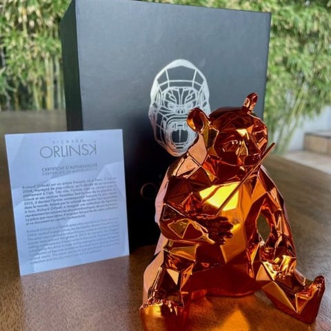 Richard Orlinski har været den største sælgende samtidskunstner i Frankrig siden 2015. Han begyndte sin kunstneriske karriere i 2004 og skabte sit første værk, en lyserød resin-krokodille, som hurtigt blev et ikonisk stykke i skulptørens bestiarium. Kunstneren tog inspiration fra popkultur, hverdagsobjekter og populære ting. Richard Orlinski udviklede snart nye skulpturer, ofte af dyr, alle symboler på frihed, magt og passion. Resultatet: elektrificerende kunstværker i popfarver og en facetskarp stil, der ville blive set over hele verden. At udstille sine