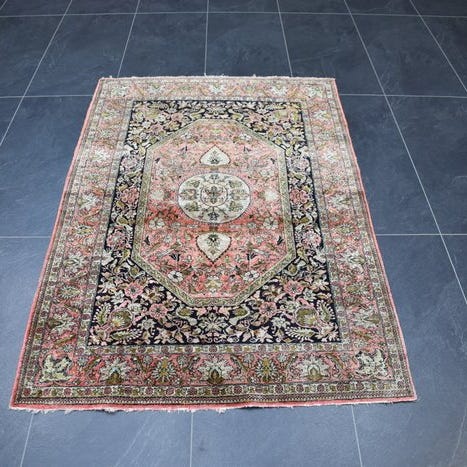 Ghoum tæppe af silke på bomuld, 255 cm × 160 cm, 149 stykker, fremstillet i Indien i det 21. århundrede, i god restaureret stand, professionelt renset, ren silke luksus. Klik på den blå "gå til varen" knap, for at købe eller byde på denne vare. Den samlede pris vil blive vist inden du afgiver dit bud.