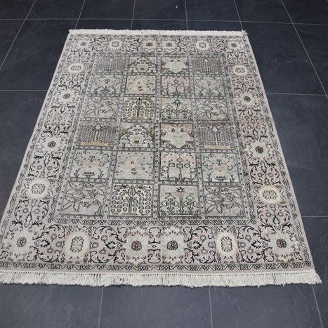 Tyrkiet, håndknyttet silke-på-silke tæppe, 154 cm x 93 cm. Klik på den blå "gå til varen" knap, for at købe eller byde på denne vare. Den samlede pris vil blive vist inden du afgiver dit bud.