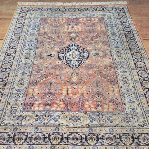 Hereke silketæppe fra Tyrkiet, model Hereke, 104 × 67 cm, 100% silke i luv og vej, 750.000–1.000.000 knuder/m², tidligt i det 20. århundrede, i meget god stand og professionelt renset. Klik på den blå "gå til varen" knap, for at købe eller byde på denne vare. Den samlede pris vil blive vist inden du afgiver dit bud.