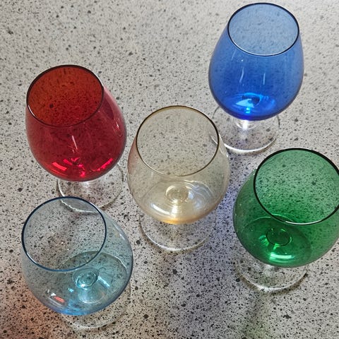 Set af 6 vintage farvede krystalvinsglas