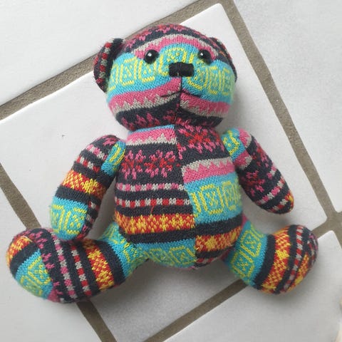 Denne hjemme hæklede bamse er lavet af acryl og uld og vat som fyld og er helt ny Den er 17 cm høj