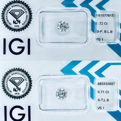 2 pcs Diamant (Natur) - 4.01 ct - Rund - E, F - I1 - Gemewizard Gemological L...