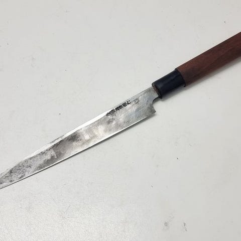 柳刃包丁 (Yanagiba-kniv) er en traditionel japansk kniv, der er specialiseret til forberedelse af sashimi og sushi. Den er fremragende til tyndskæring af fisk og skabelse af delikate snit, hvilket maksimerer friskheden og smagen af ingredienserne. Kendetegnet ved sin lange, slanke og fleksible blad, kombinerer den en skarp skærekant med et elegant design, der legemliggør æstetikken i japansk køkken.