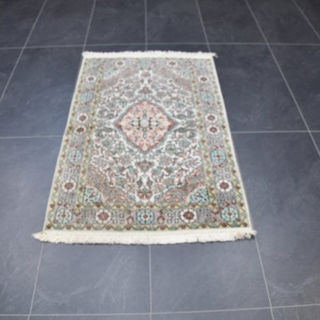 Oprindelsesland: Indien; model Kaschmir-silketæppe, luv 100% silke, kæde 100% bomuld, håndbundet, mål 177 × 128 cm, i godt overordnet stand. Klik på den blå "gå til varen" knap, for at købe eller byde på denne vare. Den samlede pris vil blive vist inden du afgiver dit bud.