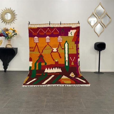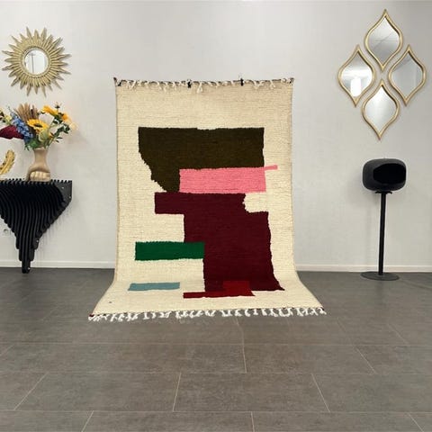 Genopdag kunsten at dekorere med dette Beni Ouarain-tæppe, et symbol på elegance og tradition. Håndlavet i det marokkanske Haut Atlas er hver enkelt del unik, med karakteristiske geometriske mønstre og naturlige nuancer, der fortæller historien og ægtheden af det berberske håndværk. Dette 100% uldlamstæppe er et mesterværk af komfort og varme, ideelt til at forskønne ethvert opholdsrum.
