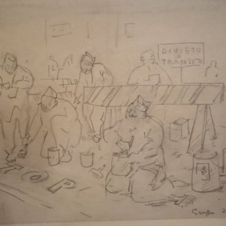 Værk på papir i mixed media-teknik, målene 32×27 cm, med en materiel effekt af kunstneren Felice Canonico.