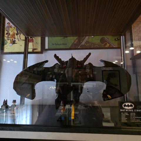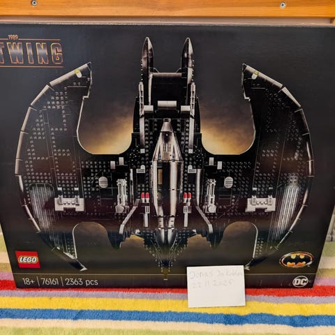 Det ikoniske design af Batwing fra filmen BATMAN fra 1989 forbedres af en robust stand, et navneskilt og 3 minifigurer: BATMAN, THE JOKER og en Boombox-galning.