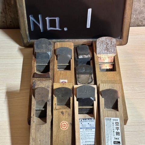 Dette parti (Lot #14) indeholder en samling af 10 gamle japanske snedkerjern (nomi). Et særligt højdepunkt ved dette sæt er tilstedeværelsen af originale producentklistermærker, herunder et fra Miki City, Japans mest berømte værktøjsfremstillingsby.
