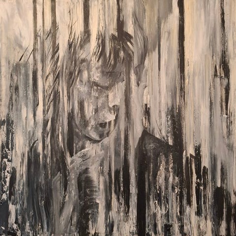 Akryl, blæk og maleri på lærred