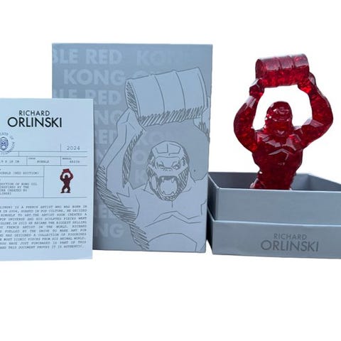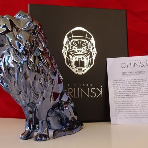Resin-skulptur med titlen Kong Oil Petrol af Richard Orlinski i en moderne flerfarvet stil, oprindelse Frankrig, mål 10 cm bred, 17 cm høj og 5 cm dyb, i god stand med ægthedscertifikat. Klik på den blå "gå til varen" knap, for at købe eller byde på denne vare. Den samlede pris vil blive vist inden du afgiver dit bud.