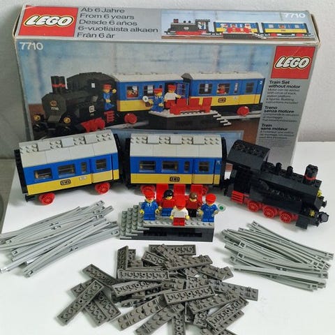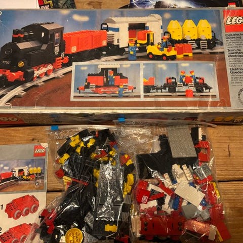 Lego vintage Legoland Train 12V 7740 Intercity-passagertog, brugt, med originalæske og 9 minifigurer; testet og fungerer, men mangler flere dele. Klik på den blå "gå til varen" knap, for at købe eller byde på denne vare. Den samlede pris vil blive vist inden du afgiver dit bud.