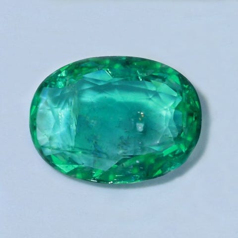 Naturlig smaragd (beryll) 9,75 ct, 1 sten, oval cabochon cut, dyb blågrøn farve fra Zambia, gennemsigtig, med moderat klarhedsforbedring, IGI-rapport nr. 752531958. Klik på den blå "gå til varen" knap, for at købe eller byde på denne vare. Den samlede pris vil blive vist inden du afgiver dit bud.
