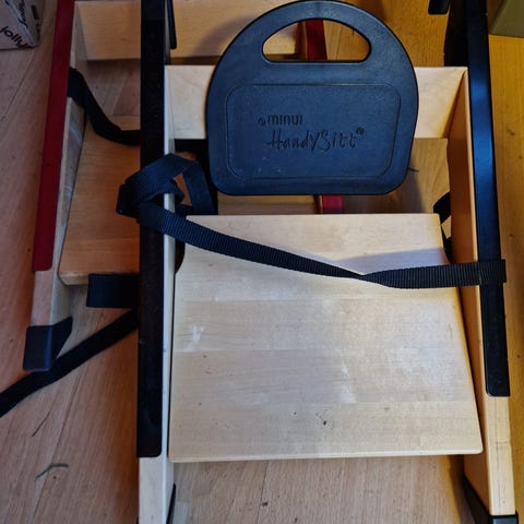 Stolen har et lille hak i toppen, og ranglen på puslebordet skal have en ny snor. Ellers super fin stand!