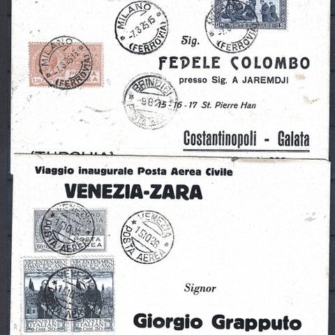 Kongeriget Italien, 5 lire luftpost Garibaldi dobbeltark med mellemrum, ubrugt uden hæftning, Sassone N. A30, 1932. Klik på den blå "gå til varen" knap, for at købe eller byde på denne vare. Den samlede pris vil blive vist inden du afgiver dit bud.