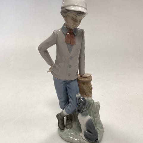Lladro Stentøjsfigur af Pige og Dreng med Hund - Facing the Wind VI SENDER
