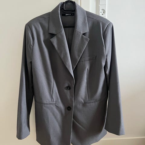Gina Tricot blazer i størrelse XL til kvinder. Jakken er grå og lavet af polyester. Den har en klassisk pasform med knaplukning og to sidelommer. Oversized.