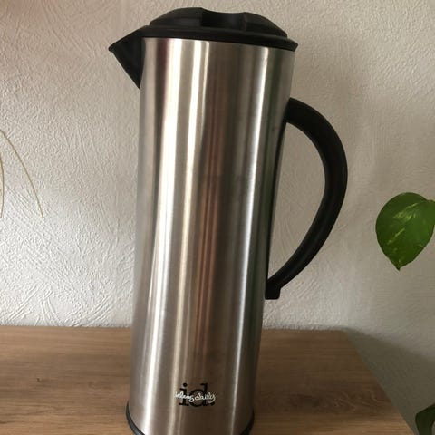 Med glasindsats, så den er velegnet til både kolde og varme drikke.