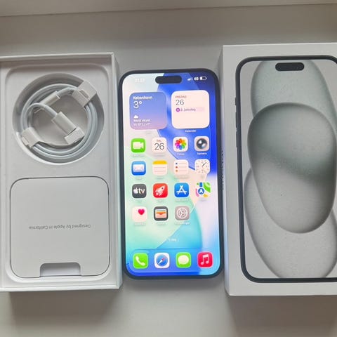 FLOT iPhone 15 Plus 256 GB i sort farve sælges!. Telefonen er i flot stand. Den fejler intet funktionsmæssigt og virker perfekt. Der medfølger også æske, cover og kvittering med. Ved interesse kan jeg kontaktes på telefon: 50 28 44 82.