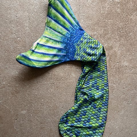 Fin Fun Havfruehale med monofinne i sort. Havfruehalen er designet til svømning og leg, og monofinnen hjælper med fremdrift i vandet. Farven på halen er sort med regnbuefarvet skælmønster og hale. Produktet er egnet til børn og unge.