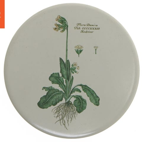 Dekorativ tallerken med en flora Danica illustration af Kodriver. Tallerkenens størrelse er Ø 15 cm og er lavet af keramik. Bagsiden har en label med pris og fabrikantens mærke, H & R Johnson Ltd. Made in England.