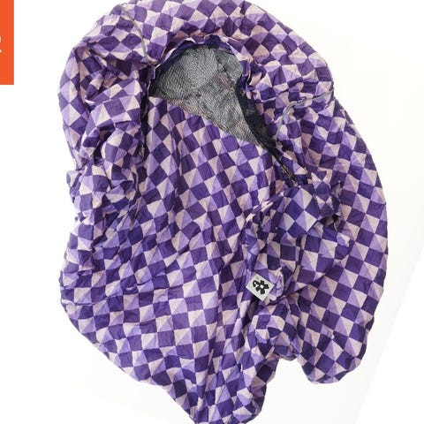 Sort regnovertræk med refleksstriber. Designet til at beskytte mod regn. Lavet af vandtæt materiale og inkluderer elastiske kanter for at sikre pasform. Størrelsen er 85x80x60 cm.