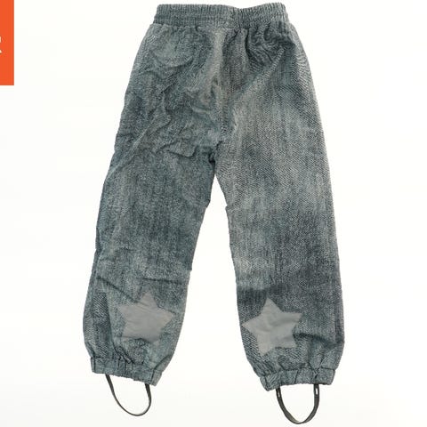 Disse termobukser er grå og har justerbar elastik i taljen samt elastik ved anklerne. Der er stropper til under fødderne for at holde bukserne på plads. Bagsiden af bukserne har stjernedetaljer som ekstra udsmykning.