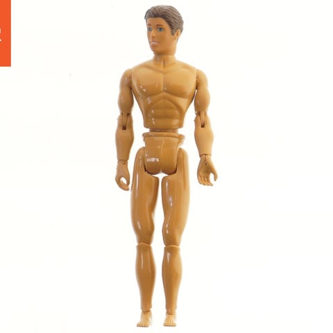 Objektet er en actionfigur med muskuløs krop, lavet af plast. Den er cirka 30 cm høj og har bevægelige led i arme og ben. Figuren har kort mørkt hår og er designet til at ligne en fitness-entusiast.