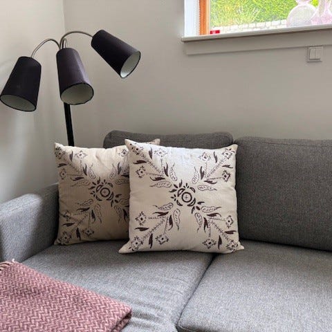 Selling beautiful design pillows. I need to leave the country so they will have to go sadly. Very soft and good condition, not used as more than decoration.