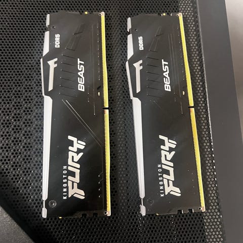I juni 2025 fik jeg nogle RAM sticks. Desværre passer de ikke til mit setup, hvilket jeg først fandt ud af efter flere forsøg. De er ikke kompatible med min CPU, hastigheden er for høj uanset om jeg sænker clock speed i bios, da jeg allerede har 32 Gb (5200 MHz) i min pc. Det vil sige at de er (meget lidt) brugte, men de har aldrig været stresstestet. Jeg har ikke original indpakning mere, men jeg indpakket dem i ESD dissipative bobleplast og en ESD sikker pose.