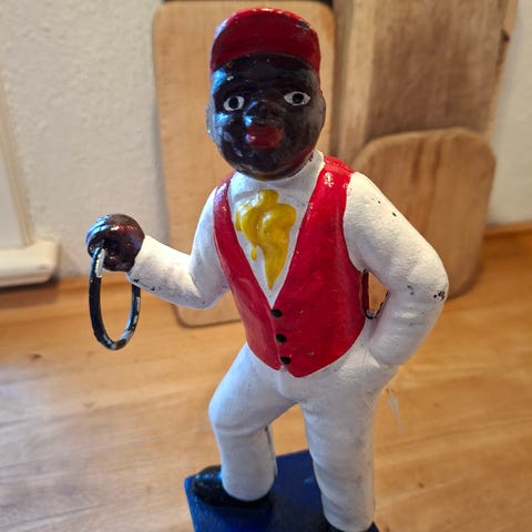 Bag på manden står "Jolly Nigger Bank". Absolut ikke woke :)