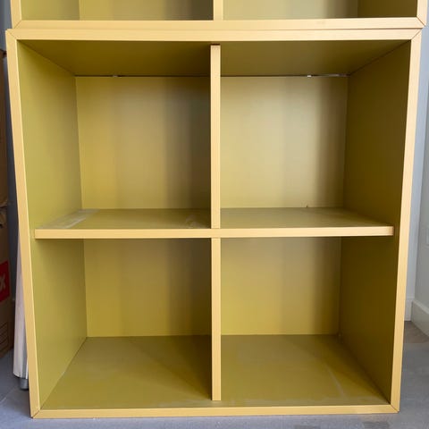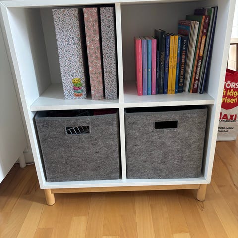 Kassebogreol, som kan monteres efter eget ønske. Da alle kasser er adskilt. Kan også bruges i flere rum.