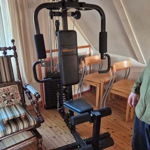 Kilberry Gym3 Body Sculpture multitræner træningsudstyr med vægtstak. Udstyret er designet til styrketræning med flere funktioner og inkluderer en vægtstak til justerbar modstand. Velegnet til hjemmebrug, sælges pga flytning og pladsmangel