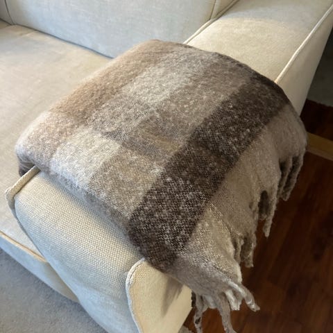 Hyggeligt sofa tæppe i hørblanding