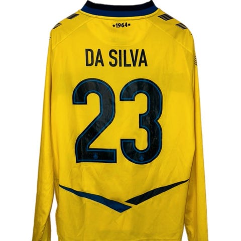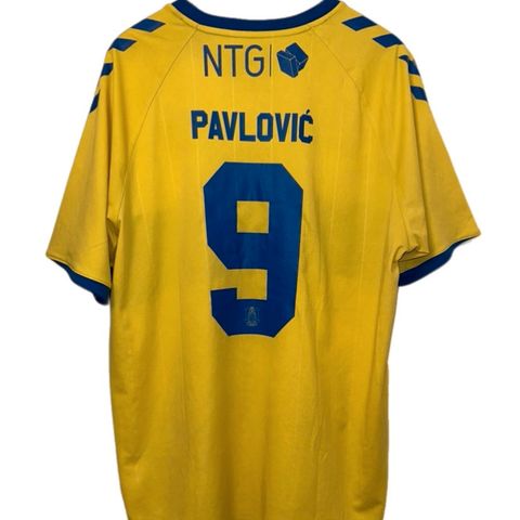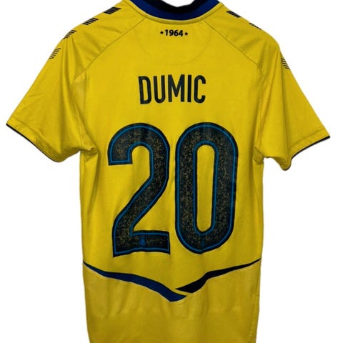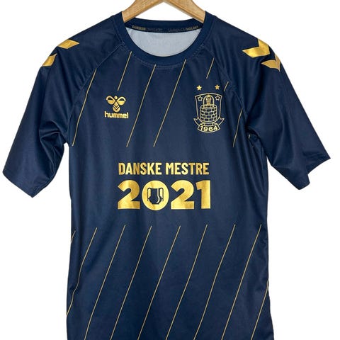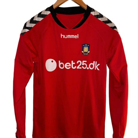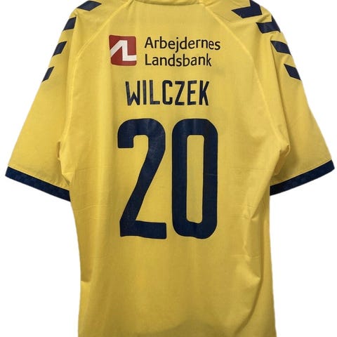 Brøndby IF Skoubo fodboldtrøje i gul og blå farve med nummer 17 på ryggen. Trøjen har kortærmet design og er velegnet til fodboldbrug signeret af kaliber og sebulonsen