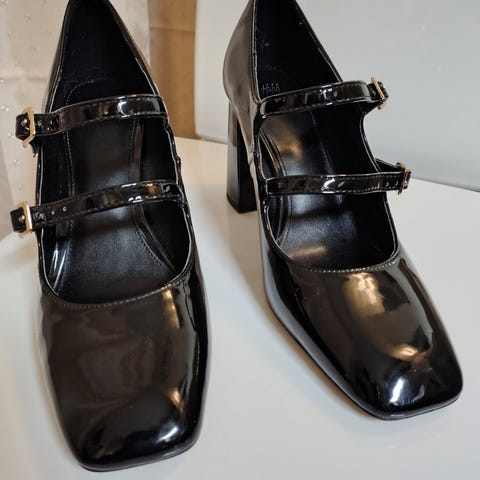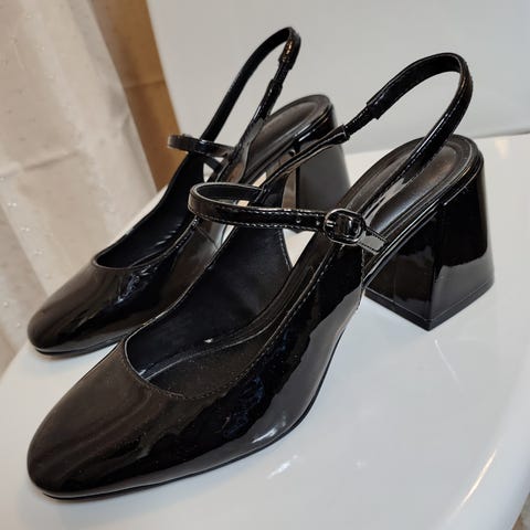 Pumps/Mary Janes, Sling Back, Lak, Str. 40, brugt en gang, så rigtig fine til prisen, brugsspor kan forekomme.