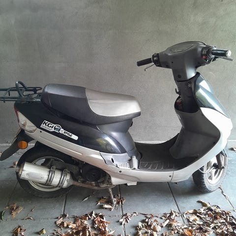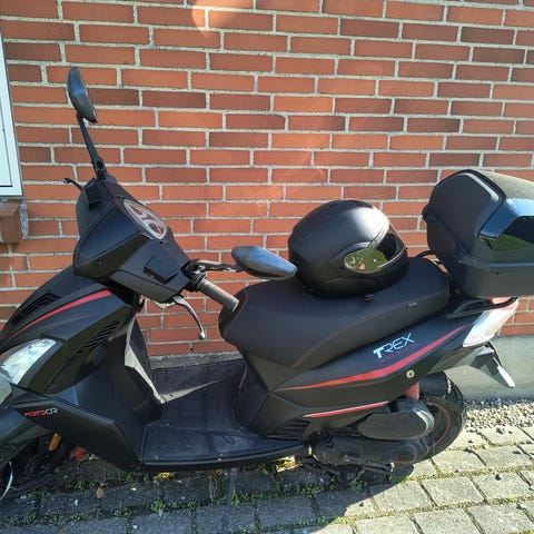 SYM Symphony ST scooter i opak grå farve. LED lys, LCD display på instrumentbord, USC udtag, stort bagagerum, justerbar affjedring bagtil. Monteret med 16" hjul. Km-stand 4394 km. Fremstår meget velholdt og med minimale brugsspor.