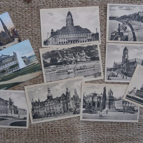 Postkort, Tyske, fra Hamburg og Dresden fra 30'erne - 50'erne (?). Ingen frimærker, poststempler, afsender/modtager. alle ubrugte. sælges samlet. Ialt 19 styks