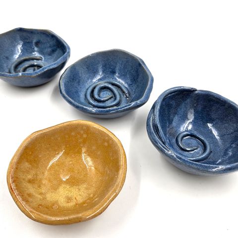 2 Memphis skåle i Ø12 farverne er rosa og lysegul/sand.