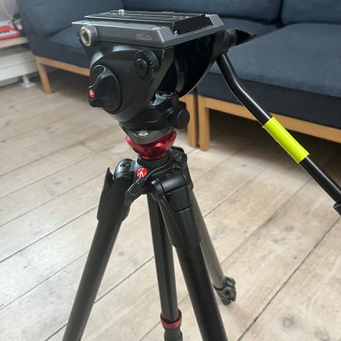 Rigtig fint kamerastativ i rigtig pæn stand som kan blive op til 180cm højt, level med lys, vejer ca 3.5 kg, taske medfølger, bundplade (qr plate) er størrelse er samme som manfrotto