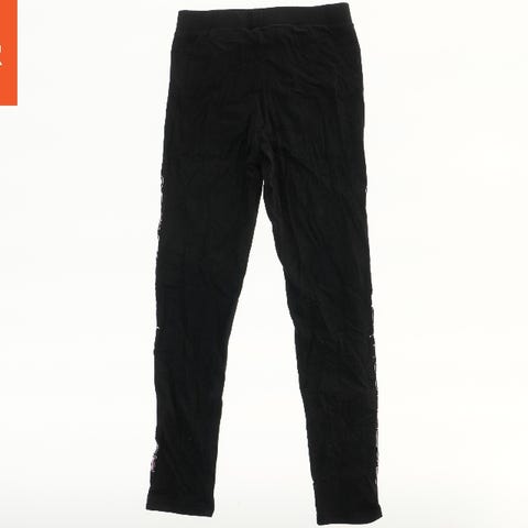 Par af sorte leggings. De er ensfarvede og strømlinede i designet. Egnet til brug i hverdagen eller som komfortabelt tøj til afslapning.