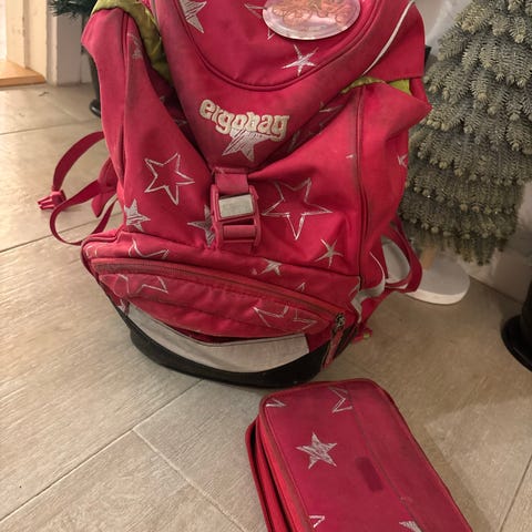 Dette sæt indeholder en Ergobag skoletaske, en gymnastikpose, et penalhus med indhold såsom blyanter, viskelæder mv og en lille pung. Rygsækken har et rummeligt hovedrum med flere mindre lommer og polstrede stropper for komfortabel brug. Både gymnastikposen og pungen kan nemt fastgøres til rygsækken. Penalhuset er udstyret med flere rum til skrivematerialer og har en gennemsigtig lomme til skoleskema. Alle dele af sættet er dekoreret med et stjernemotiv og er i en primær rød farve. en ergobag rygsæk kan indstilles meget nøjagtigt efter barnets højde og drøjde således så den føles rar og bæres så barnets ryg mest muligt skånes. Der er også hoftestropper således så taskens væg også bæres på hoften og ikke kun på skuldrene.